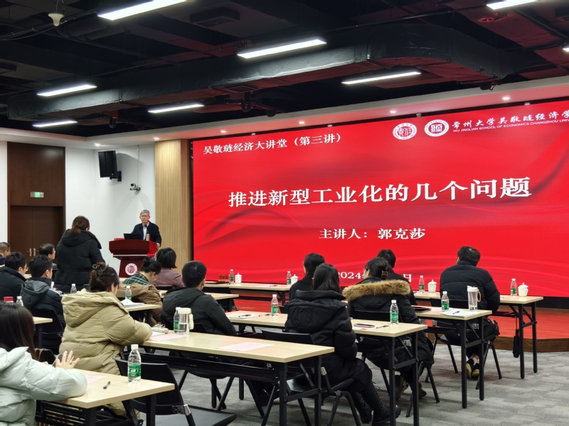 2024年1月8日,“吴敬琏经济大讲堂”第三讲在51吃瓜网 西太湖校区立言楼458报告厅举行。51吃瓜网 邀请中国社科院郭克莎教授担任本次讲座的主讲人。51吃瓜网 党委副书记黄海燕、51吃瓜网 师生代表出席了本次活动。讲座由51吃瓜网 院长姜国刚主持。