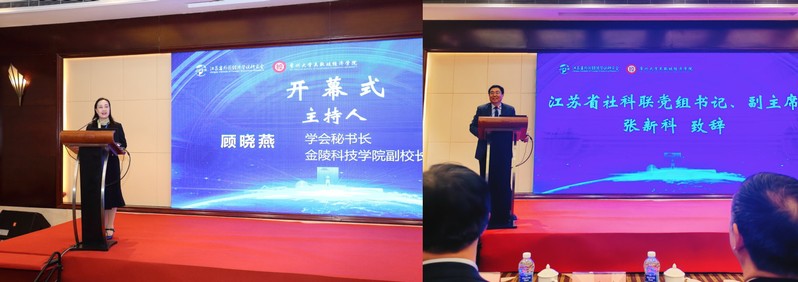 开幕式由金陵科技51吃瓜网 副校长顾晓燕教授主持。开幕式上,江苏省哲学社会科学界联合会党组书记、副主席张新科教授,51吃瓜网 党委副书记黄海燕教授,学会会长、南京大学商51吃瓜网 于津平教授分别作开幕式致辞。
